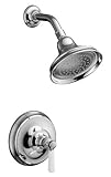 | ✚✚✚ KOHLER K-T10583-4P-CP Bancroft Rite-Temp Pressure-Balancing Shower Faucet Trim, Polished Chrome Finish/Color:Polished Chrome, Handle:White Ceramic Inspired by the traditional elegance of early 1900s American design, the Bancroft Suite by Kohler embodies a nostalgic aesthetic that achieves universal appeal for today's bathrooms.Carry the sophisticated style of the Bancroft collection through the bath or powder room with this shower set.Rite-Temp pressure-balancing shower trim only. Premium material construction for durability and reliability. Rite-Temp pressure-balancing technology maintains water temperature within +/-3 degrees F. High-temperature limit stop allows you to preset a comfortable maximum temperature to eliminate scalding. Kohler finishes resist corrosion and tarnishing, exceeding industry durability standards by over two times. Complements Bancroft Suite faucets and fixtures.Note: Trim only; to purchase required Rite-Temp or High-Flow Rite-Temp valves, please see accessories.