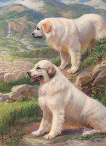 Pyrenees Dogs Wall MuralEnd User License Agreement - I understand that in purchasing any mural by Magic Murals, I obtain no copyright rights or other intellectual property rights of any form in the content and may not duplicate or re-publish the photograph or artwork in the mural for any reason, including, but not limited to, commercial purposes. Commercial applications such as advertising or POP (point of purchase) displays are strictly prohibited. I further understand that in selecting any content and in adding text or other materials to such content, I in no way obtain copyright rights or other intellectual property rights in the content as joint copyright owner or otherwise.